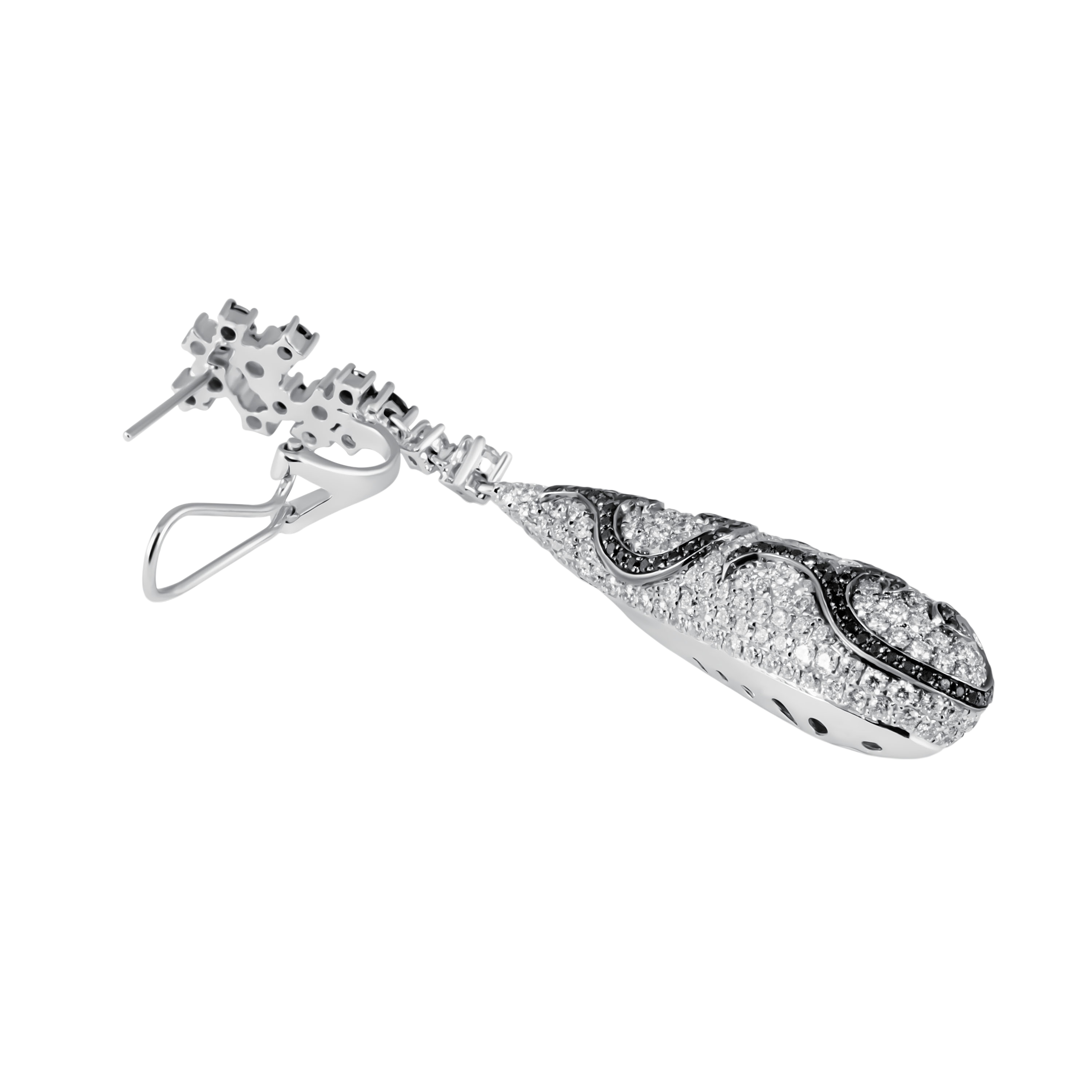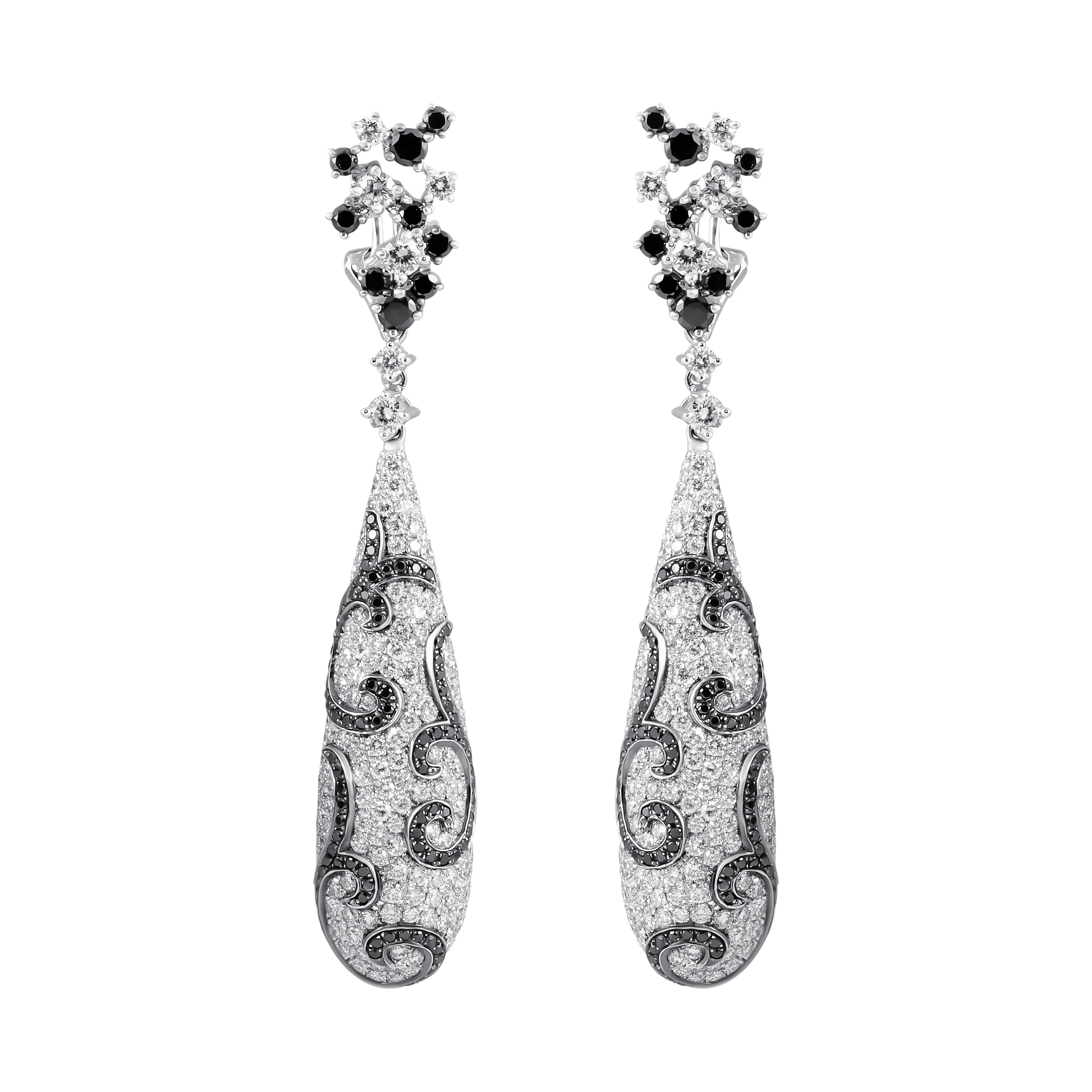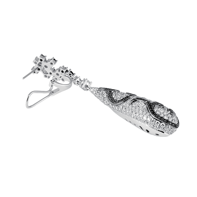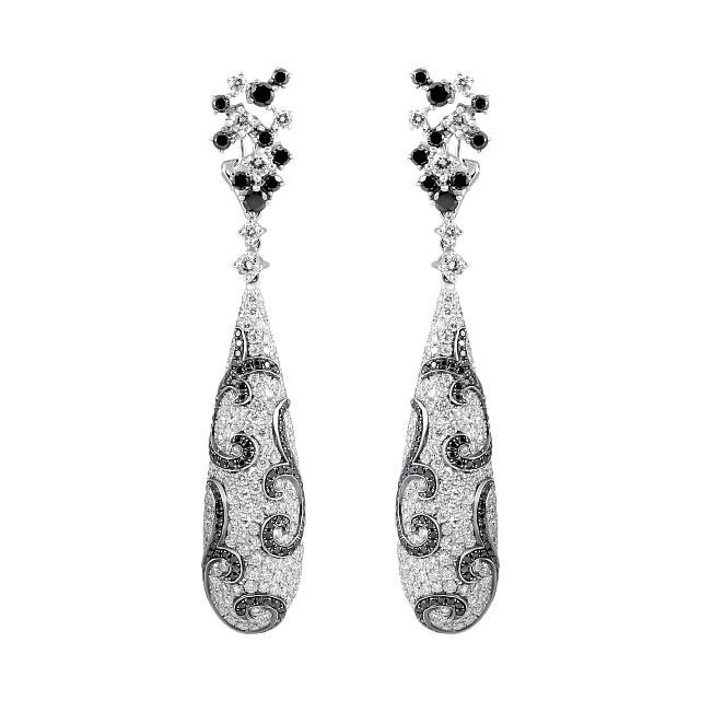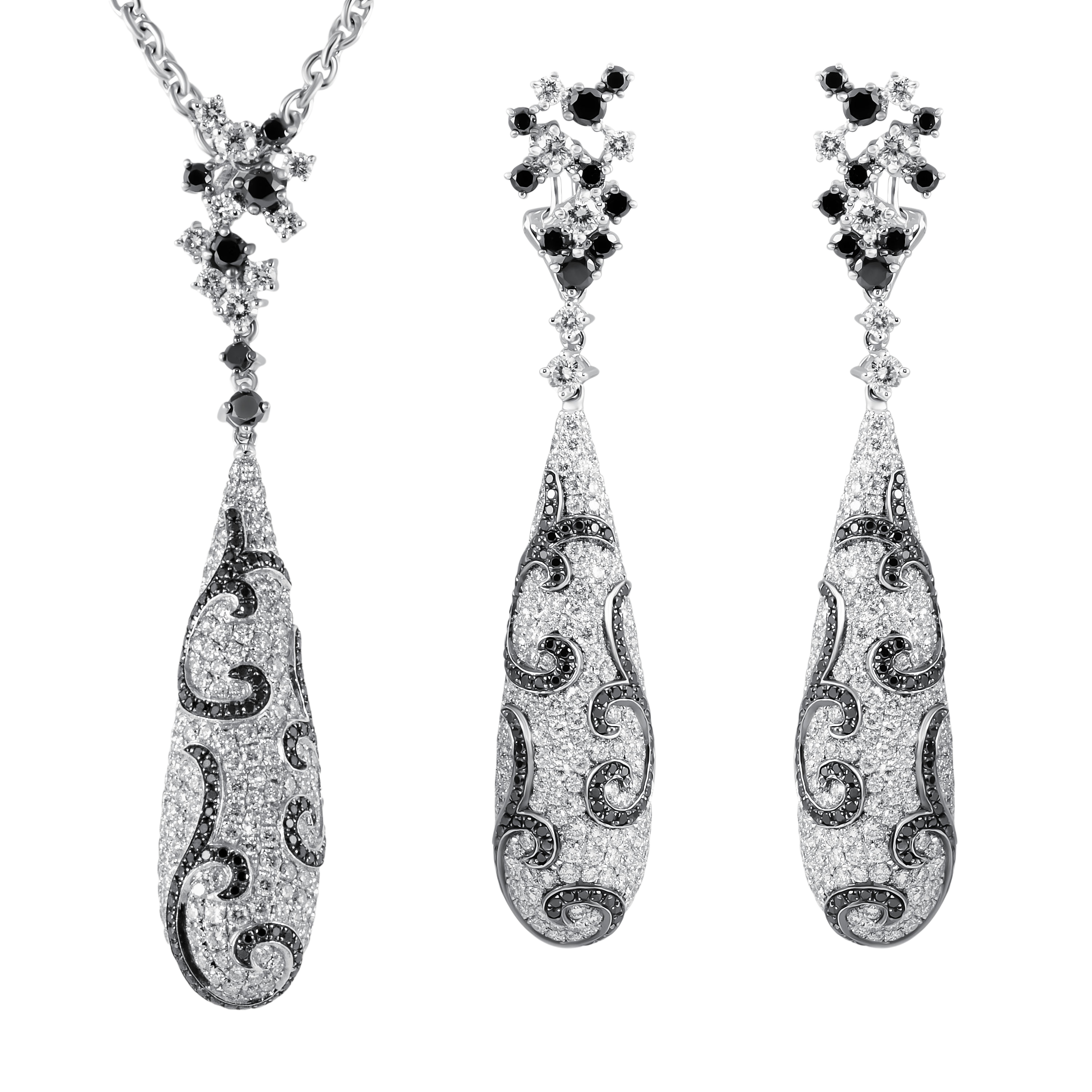 Серьги идеально дополняют колье, повторяя форму капли и украшенные бриллиантами, создавая гармоничный и завершенный образ.