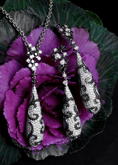 Дизайн этого гарнитура несет в себе символизм красоты, изящества и обновления жизни. Подвеска, усыпанный бриллиантами, олицетворяет рождение новых начинаний, расцвет чувств и пробуждение природы после долгой зимы.
