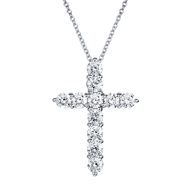 С весом в 1.10 карата, центральный элемент колье — изящный крест, украшенный