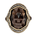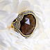 Дымчатый кварц имеет характерный серый оттенок, который прекрасно контрастирует с желтым золотом. Форма камня выбрана так, чтобы максимально подчеркнуть его природную красоту и создать эффект глубины. Классическая огранка придает ему дополнительный шарм и делает его центром композиции.