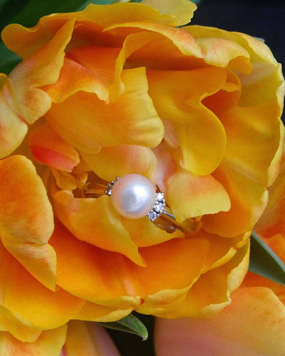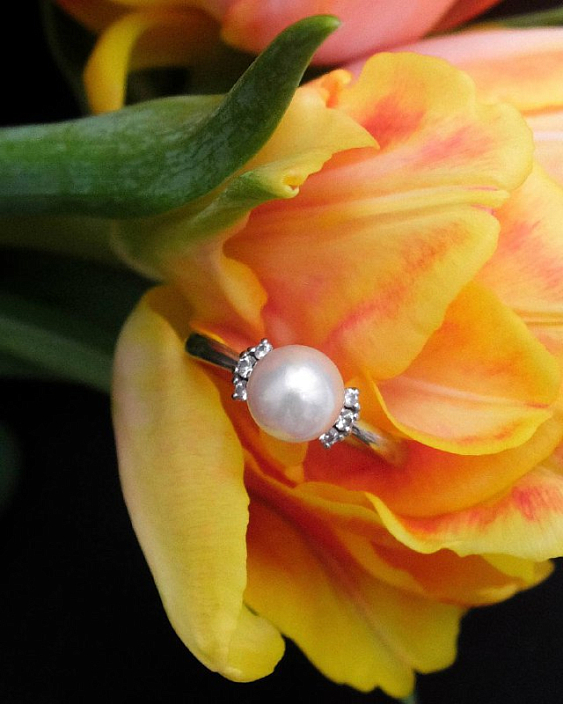 Жемчуг Акойя — это один из самых известных и ценных видов культивированного жемчуга. Он производится в Японии и славится своим идеальным блеском и гладкой поверхностью. Один жемчуг в этом кольце добавляет нотку утонченности и изысканности.