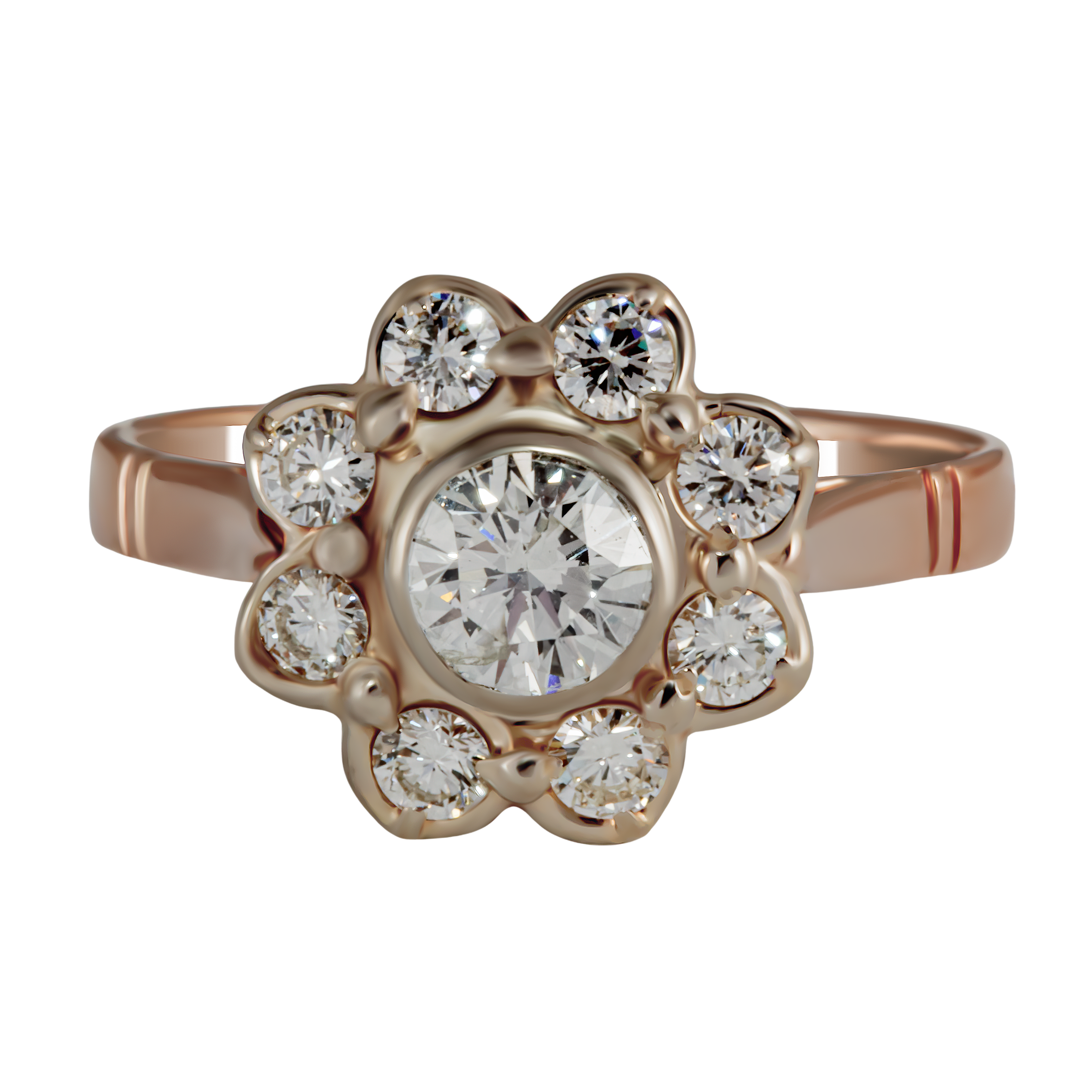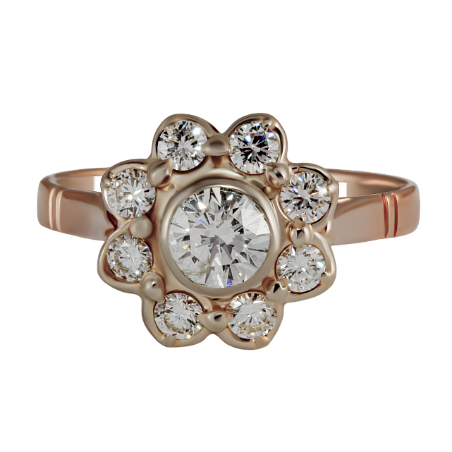 Материалы: Используется розовое золото 585 пробы для создания основы кольца.