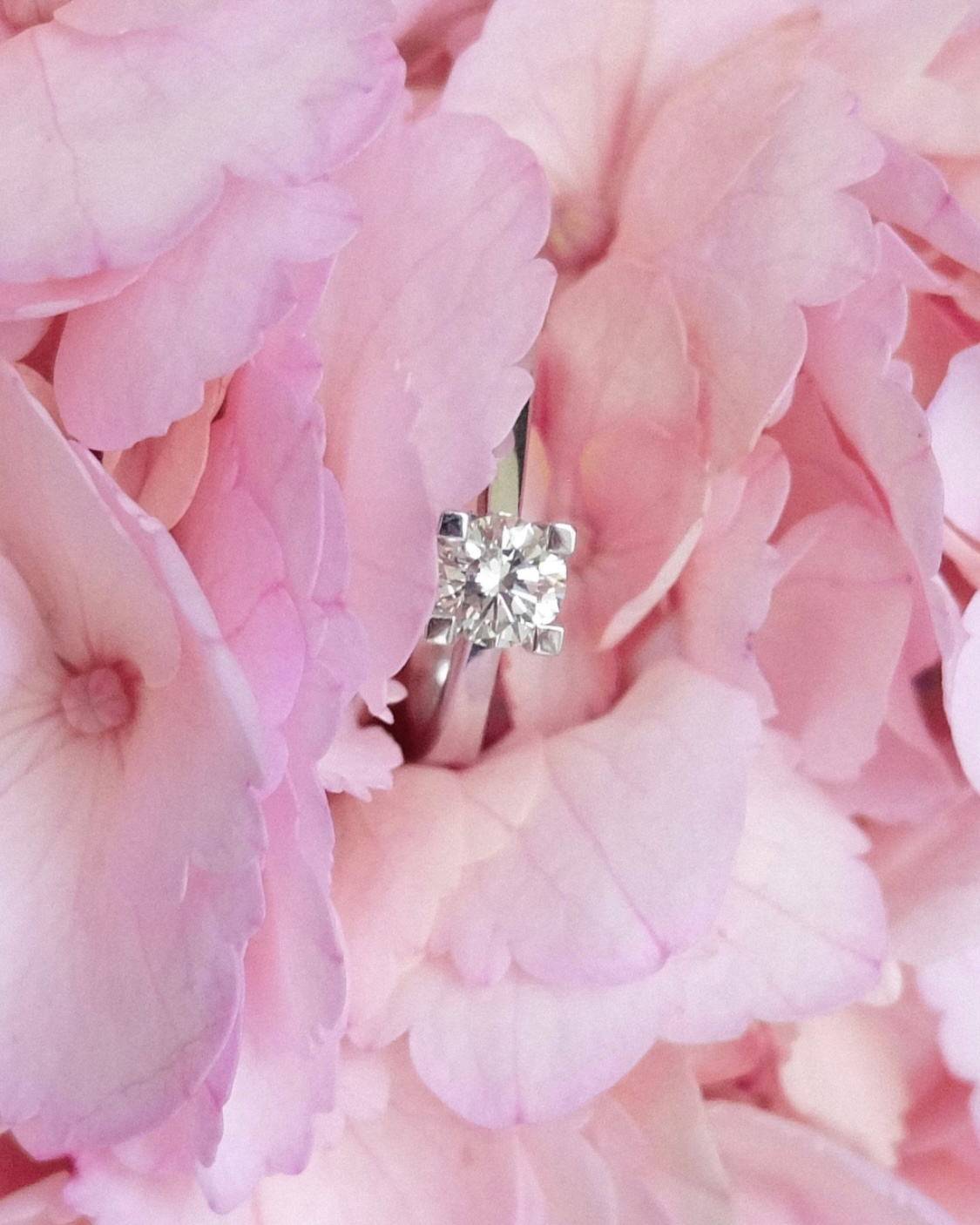 Бриллиант оправлен в классическую оправу "бриллиант" с четырьмя зубцами, которая позволяет максимально раскрыть красоту и блеск камня.