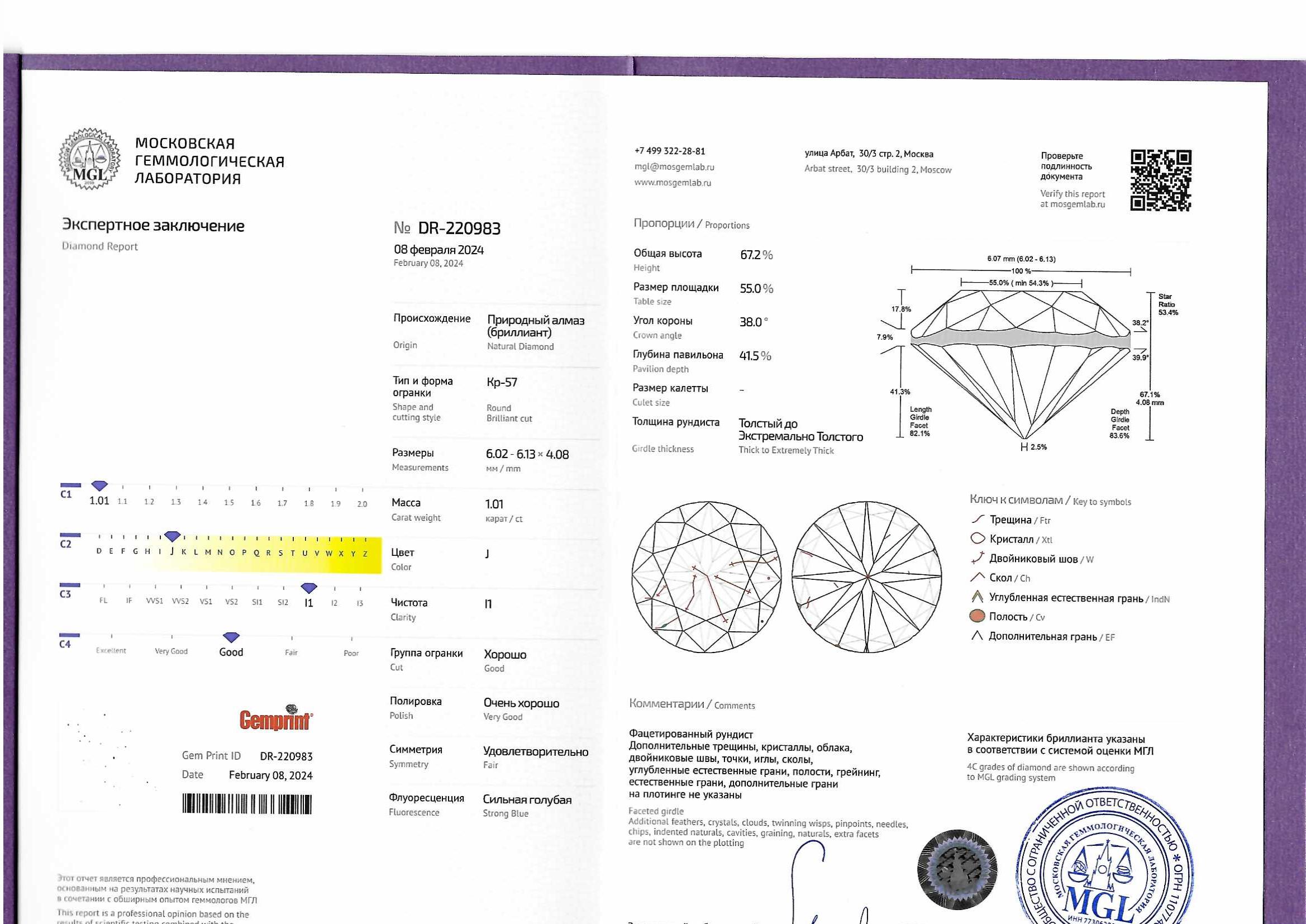 Бриллиант с круглой огранкой весом 1,01 карата — это не просто камень, а настоящий шедевр природы.