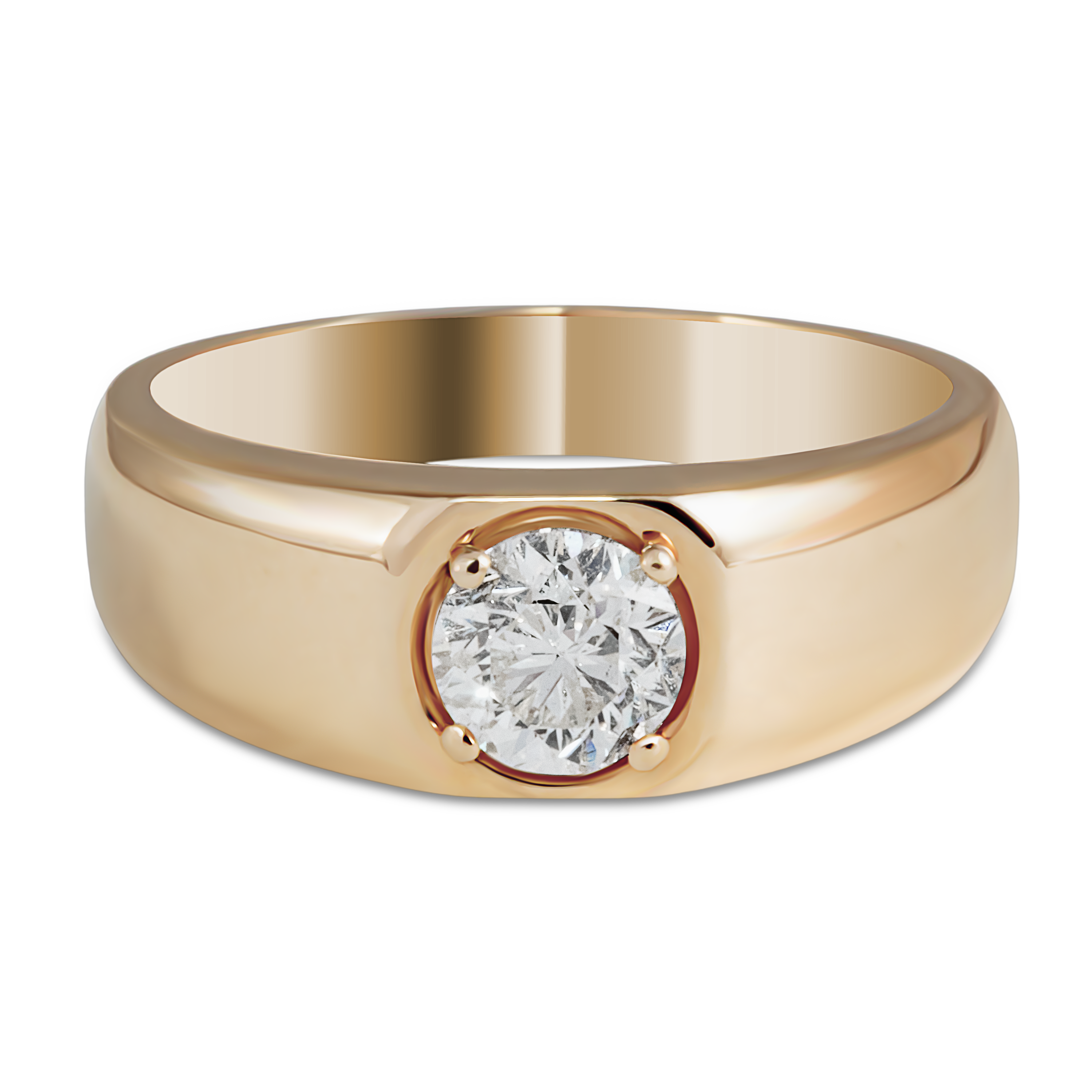 Мужское кольцо из желтого золота 750 пробы с центральным бриллиантом круглой огранки — это не просто украшение, а символ статуса и стиля. Оно станет прекрасным дополнением к вашему образу или незабываемым подарком для