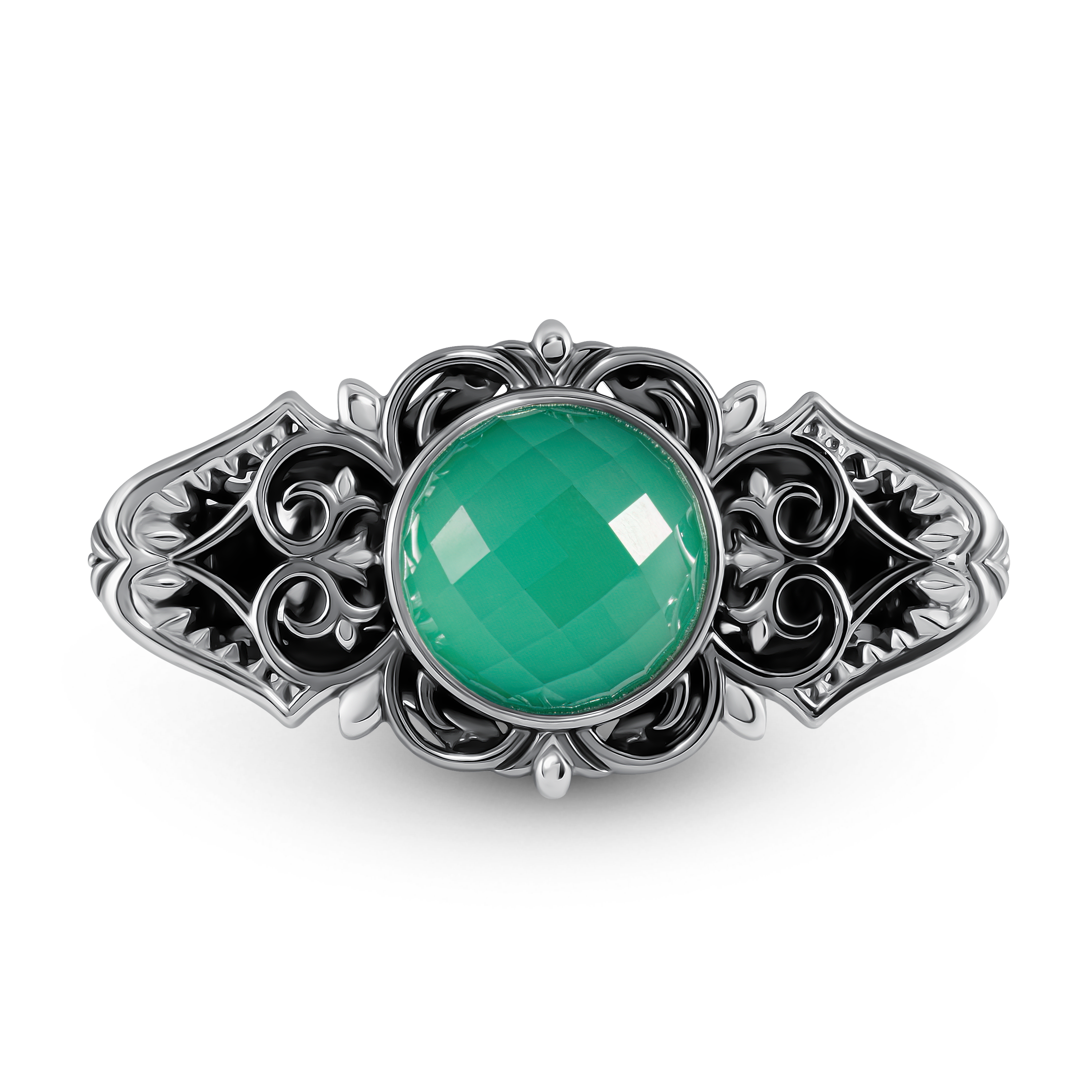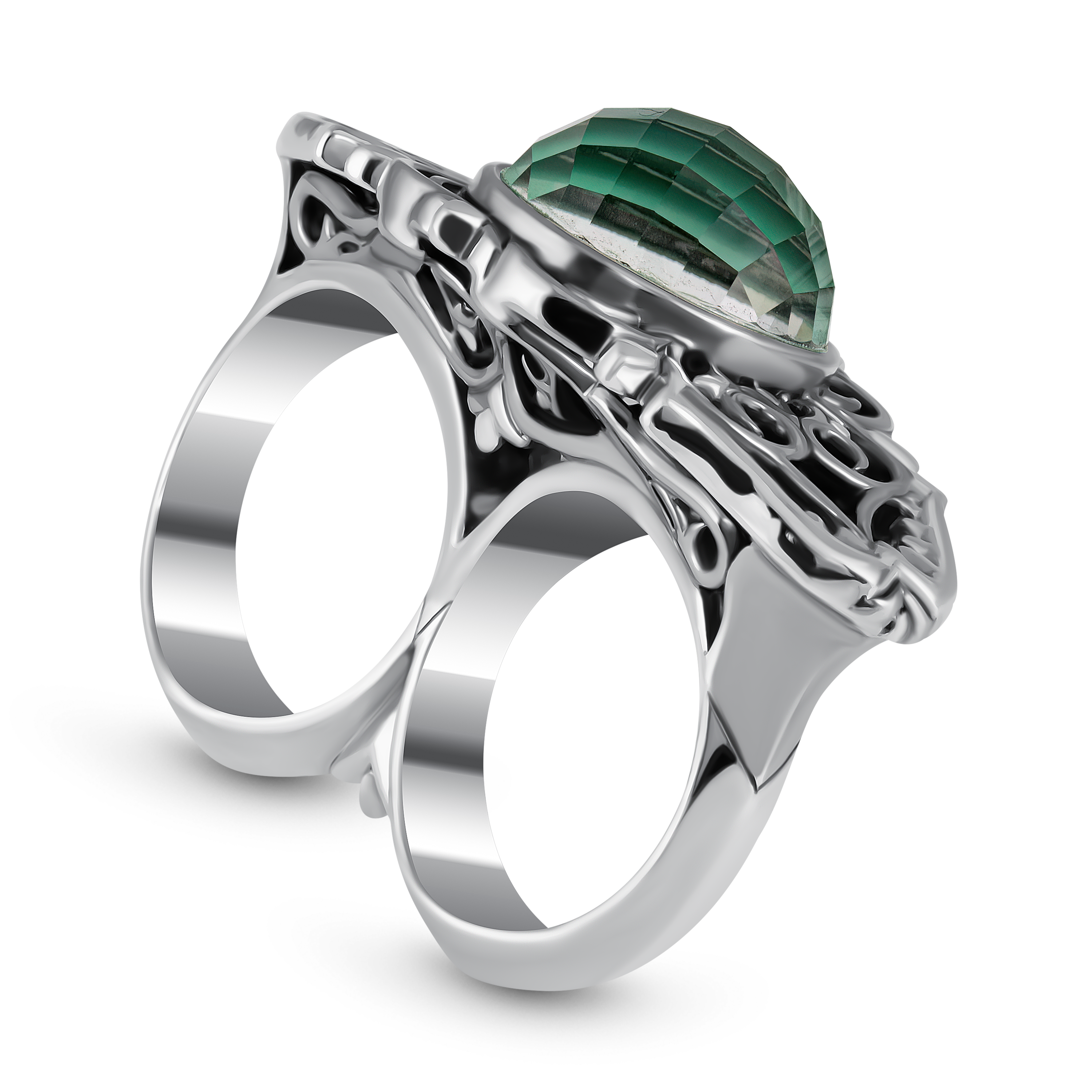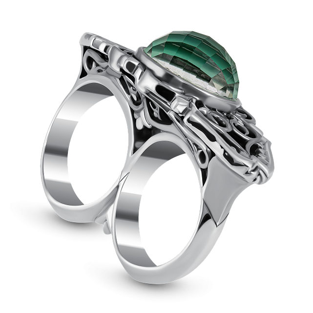 Зелёный кварц, украшающий кольцо, также имеет свое значение. Он символизируют чистоту, вечность и безграничную красоту. Его сияние напоминает о том, что даже в самых необычных и смелых формах можно найти гармонию и совершенство.