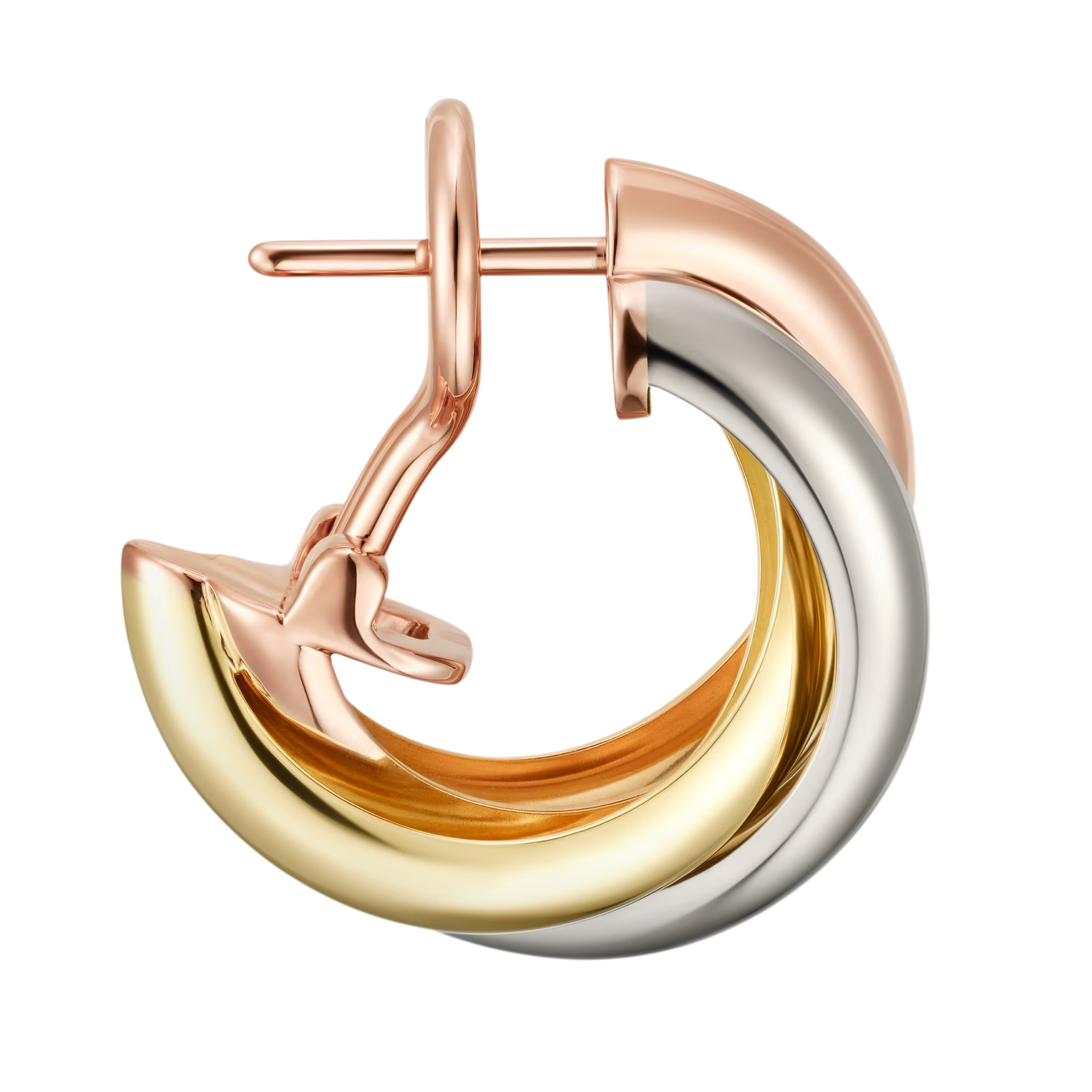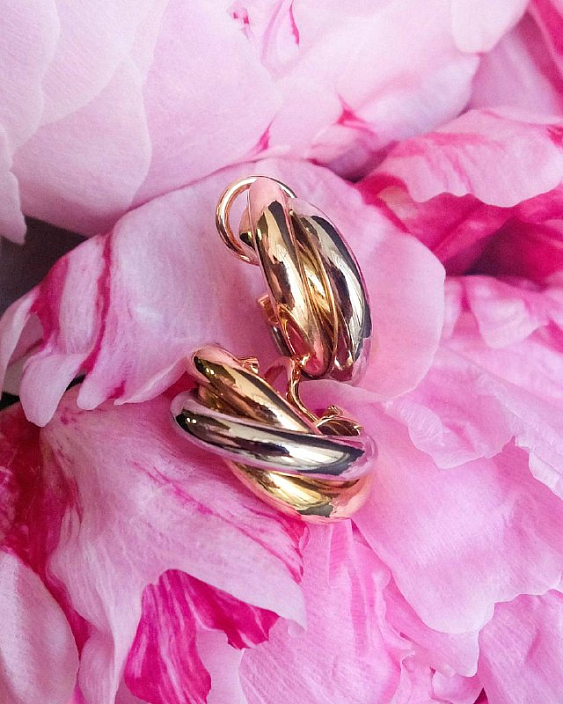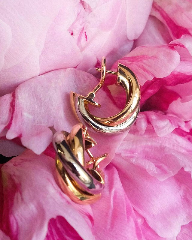 Дизайн серьег Trinity Classic основан на концепции трех переплетенных колец, которые представляют собой единство трех элементов. Эти кольца выполнены из различных видов золота: